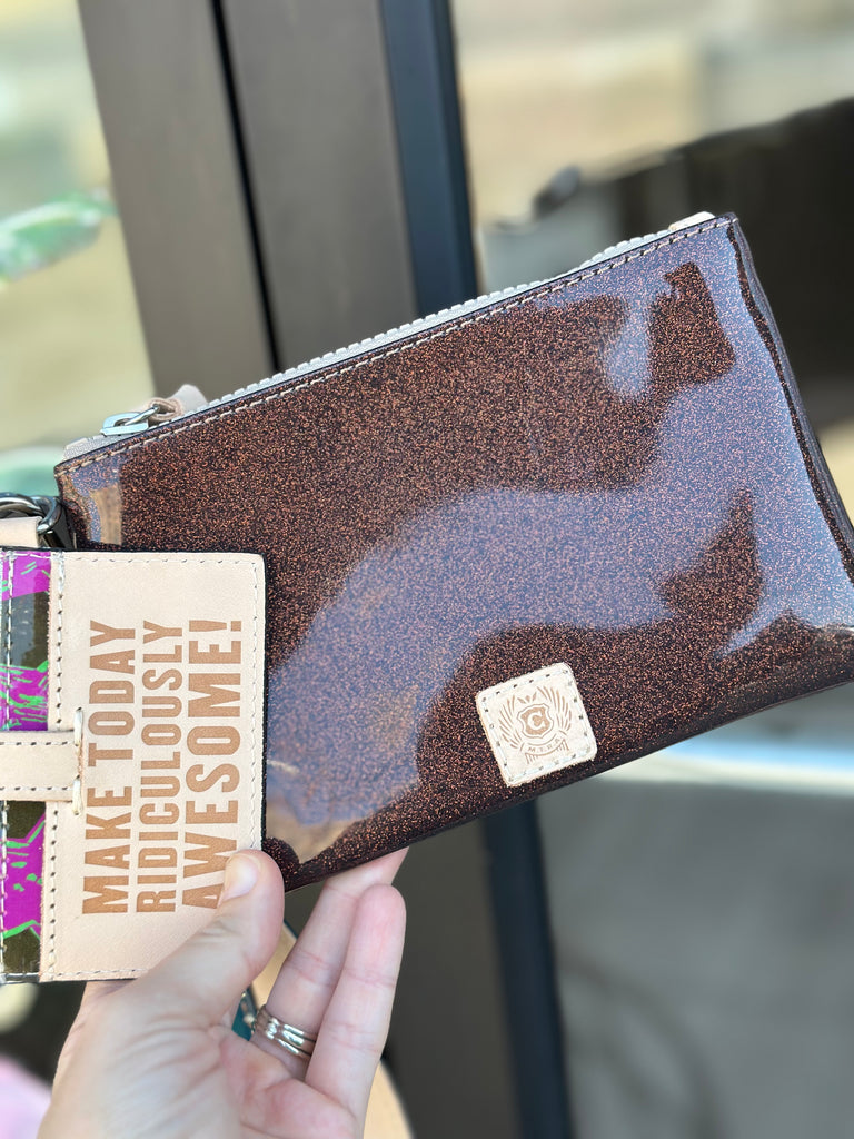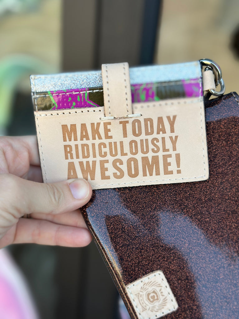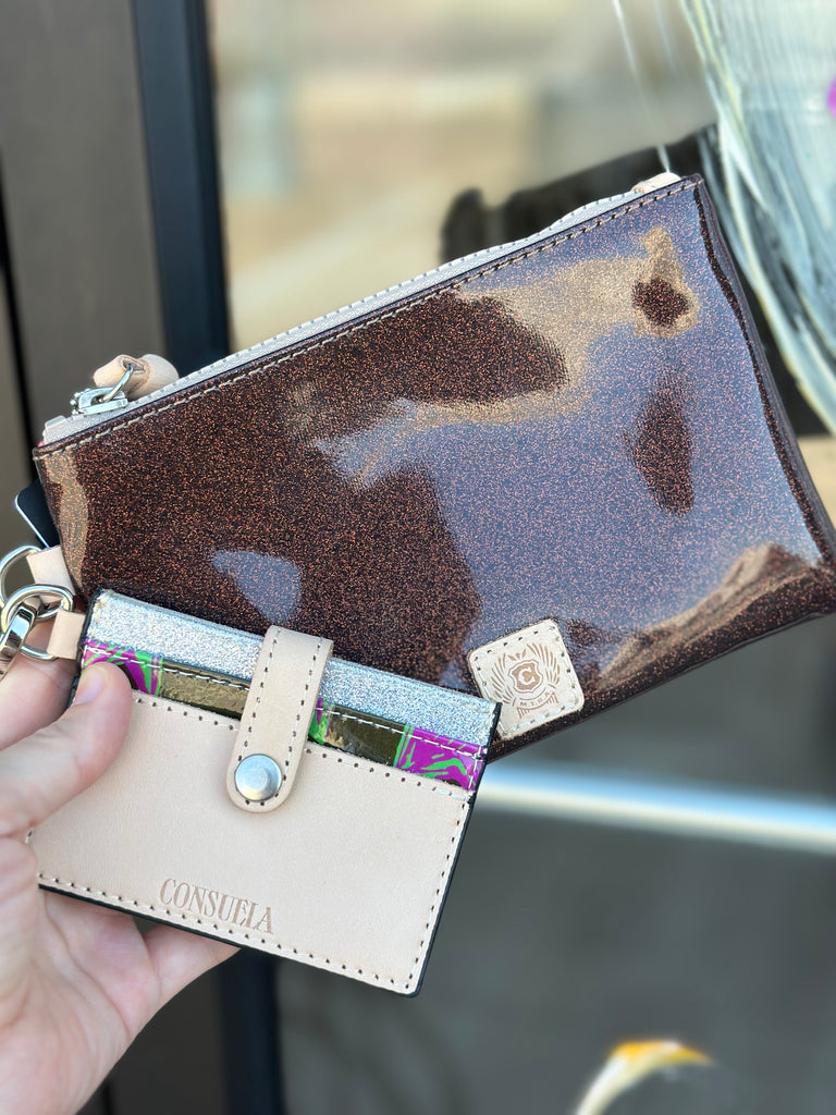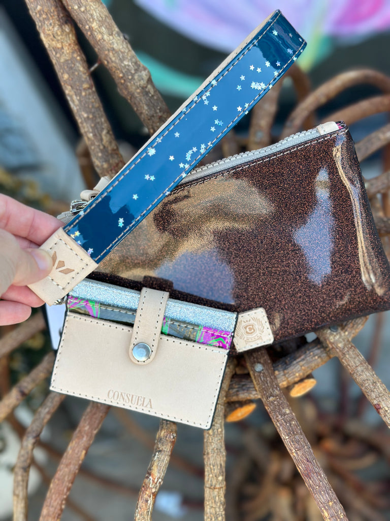 The Combi, a combination of on-the-go accessories, is a new way to carry your keys, cards, and the small stuff together or separately. This embroidered wristlet wallet includes a pocket pouch, secure card slot wallet and fits comfortably around your wrist.