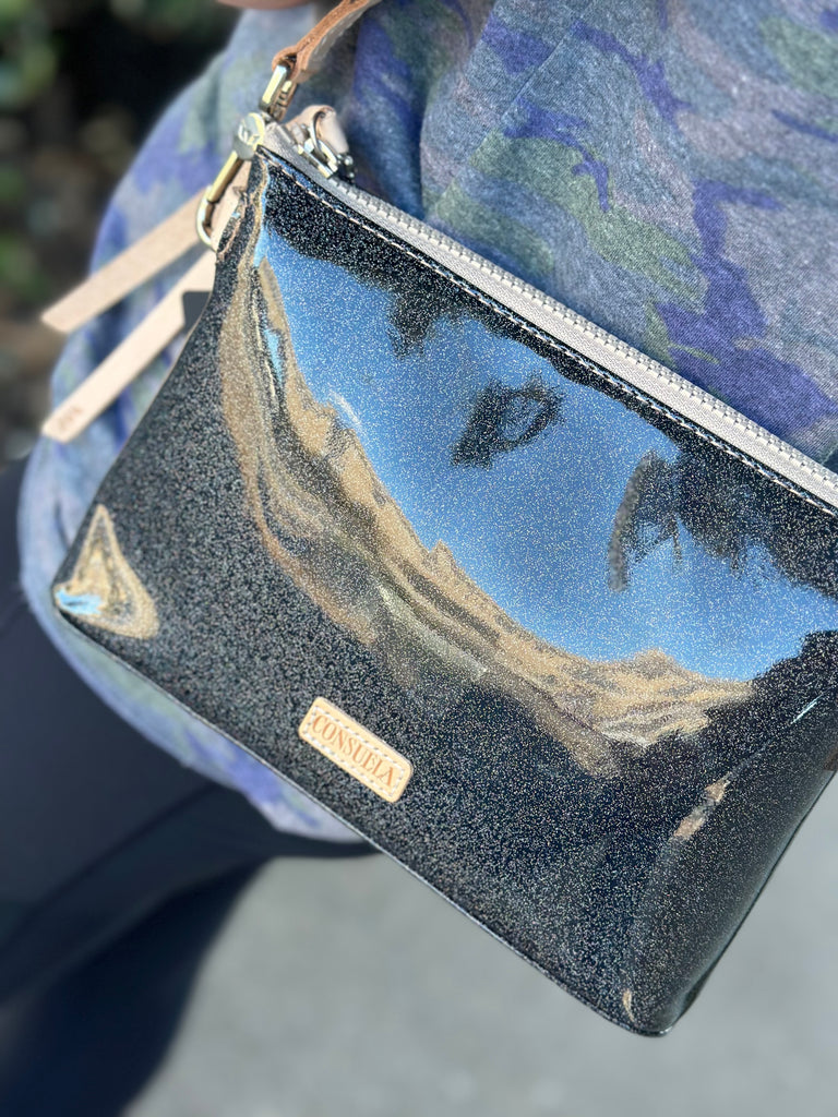 • 8 ¼" (W at the base), 9 ¼” (W at the top) x 5 ¾” (H) x 2" (D), 14 ½”-27 ½” adjustable crossbody strap drop