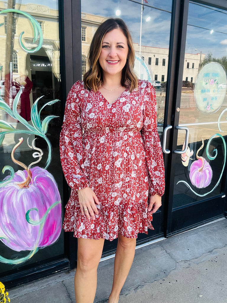 Our Fall Boho Floral Dress gives us all the fall feels with a beautiful floral print! Great for work, family photos, weddings, upcoming holidays or a great piece to make you feel good each day! This dress is also fully lined and goes great with your favorite sandals, booties or fall boots! Available in sizes Small to X-Large and size Medium is shown. Sizing is as suggested. This dress runs true to size.