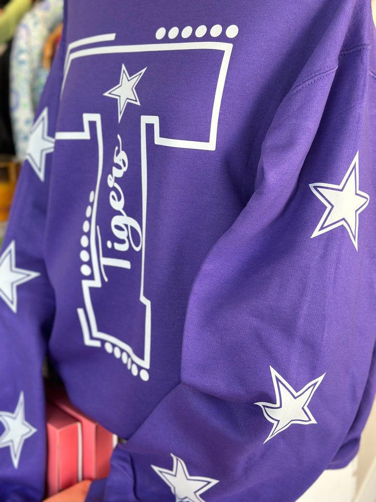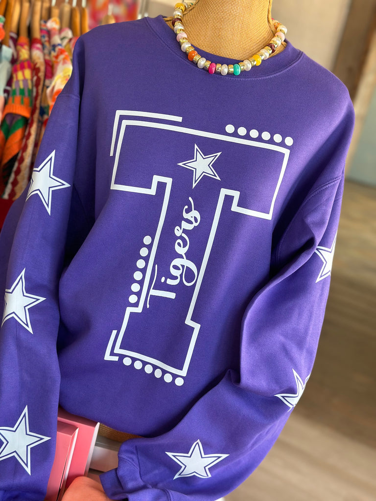 Get your Tiger Spirit Shoot for the Stars Sweatshirt. This comes in sizes Small to 3X and is a relaxed fit.