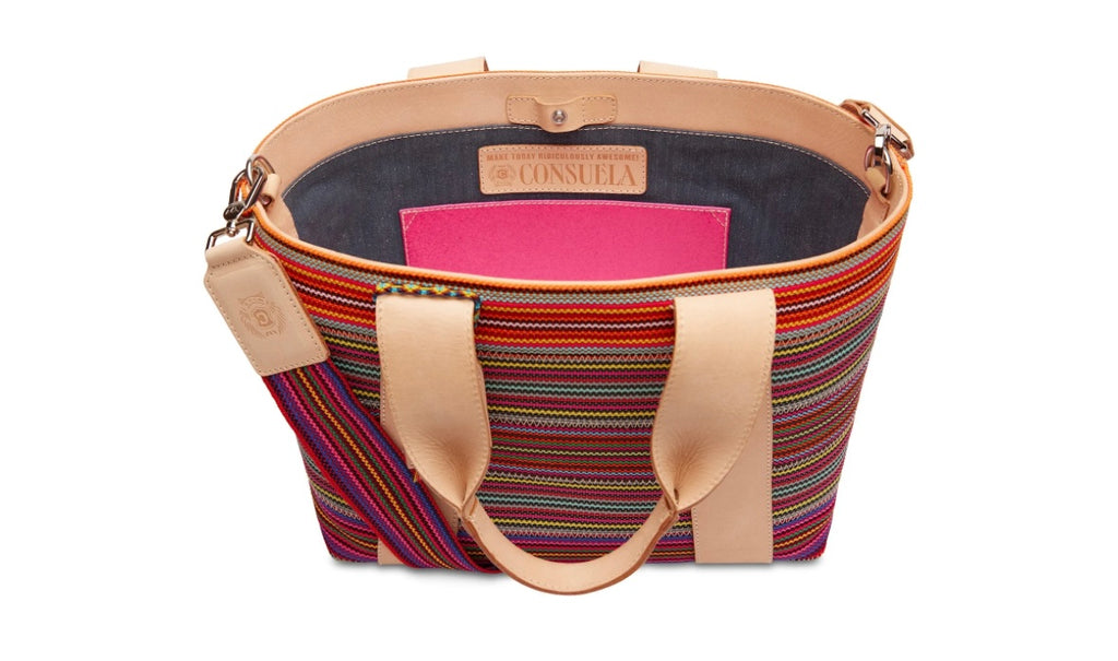 Our Carryall was crafted with versatility in mind. Roomy enough for plenty of work essentials or all the necessities for a day packed with appointments, we love this colorful, textured bag for everyday use. Carry this bag by the leather shoulder straps or the adjustable crossbody strap for ease and comfortability.