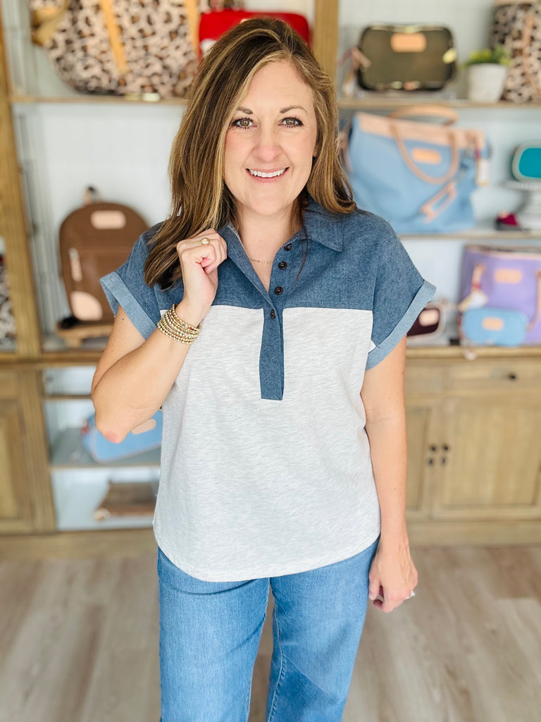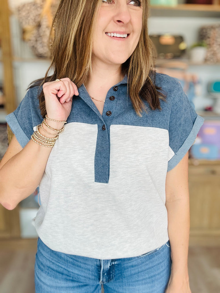 Looking for that classic go-to top that’s comfy, easy and makes you look good and feel put together - this denim mix top checks all the boxes!