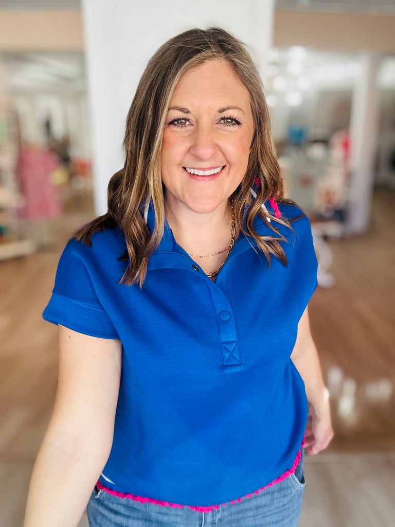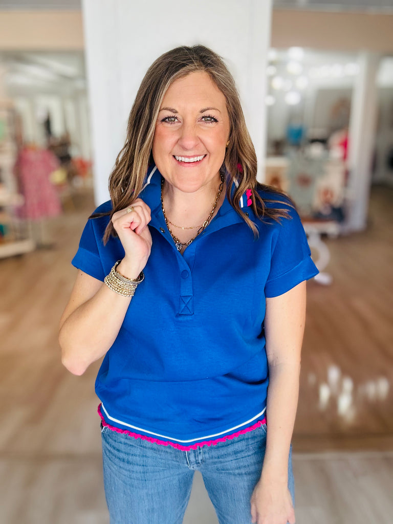 Looking for that classic go-to top that’s comfy, easy and makes you look good and feel put together - this blue stop checks all the boxes!