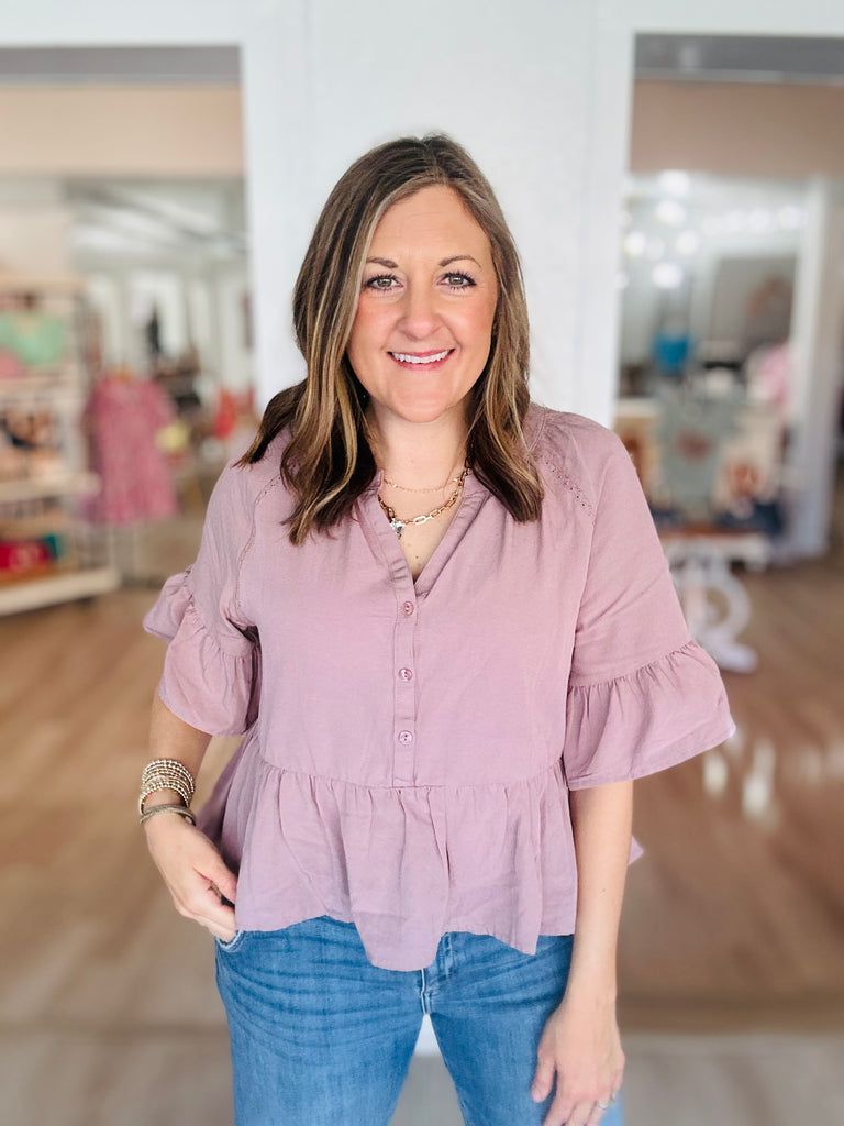 This top is a perfect piece to step into spring! It has a little ruffle for that extra flair and is a great closet staple!