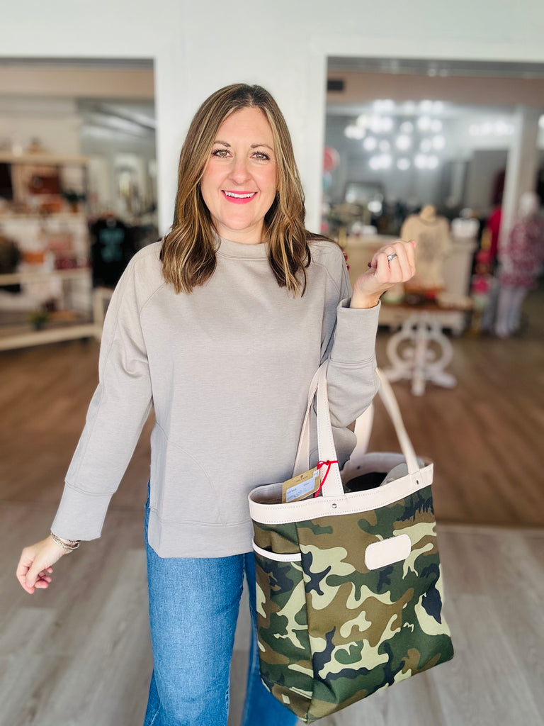 This scuba top is the softest material and gives all the luxe vibes! It is the perfect relaxed fit, grab and go and still look cute and put together piece!! This is a little oversized, if you like a more fitted fit or if between sizes, size down. The pullover is a classic go to that you can wear over and over again!