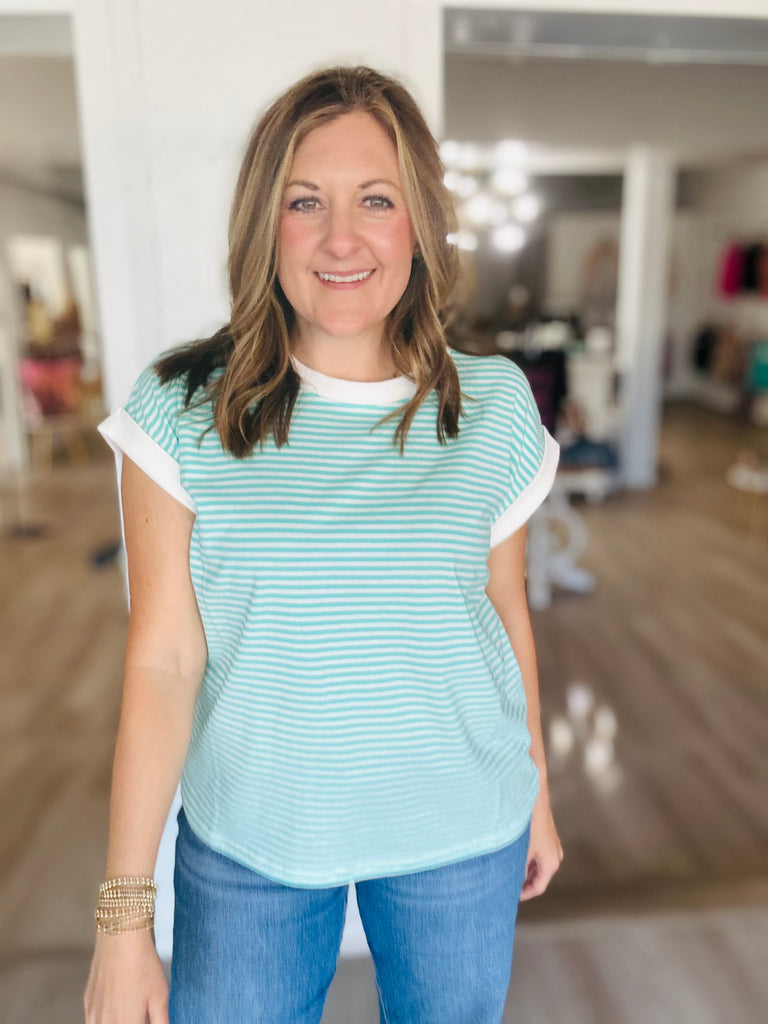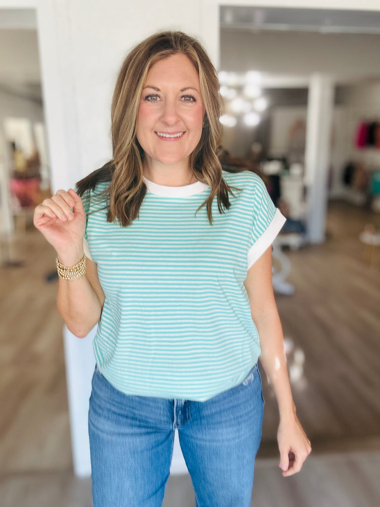 Looking for that classic go-to top that’s comfy, easy and makes you look good and feel put together - this mint stripe top checks all the boxes!