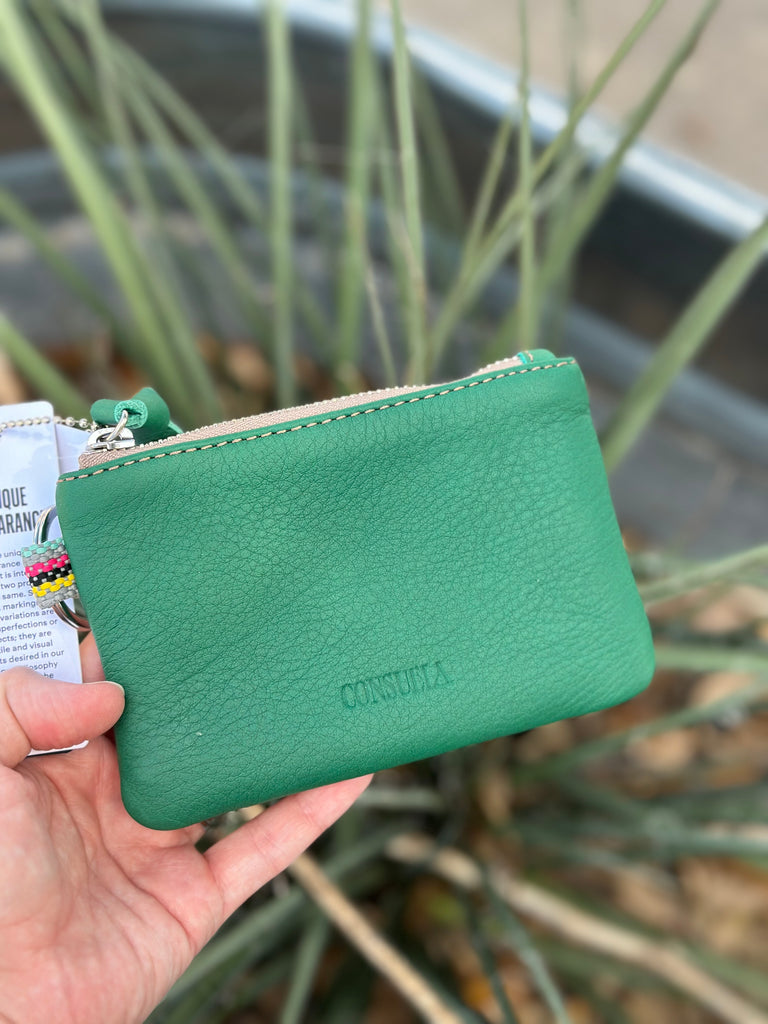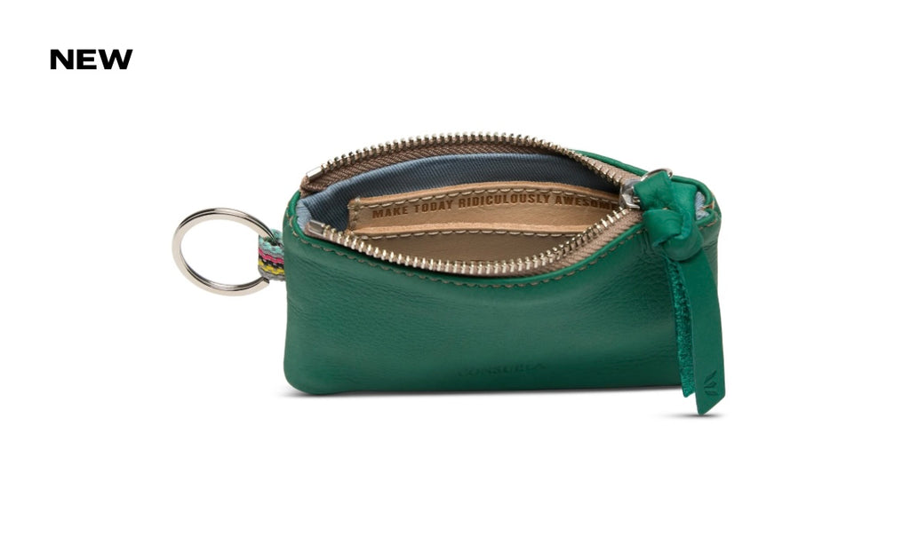 The Pouch is an easy, all-in-one bag to keep your cards and cash organized and on hand. An attached metal keyring takes this colorful pouch wallet from your bag to keys with ease.